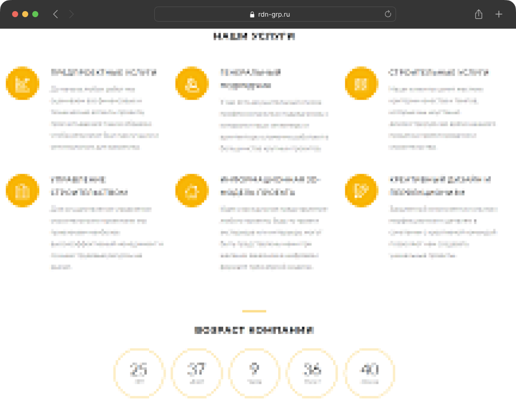 Создать яркий сайт-визитку агентству по оказанию услуг в сфере строительства.